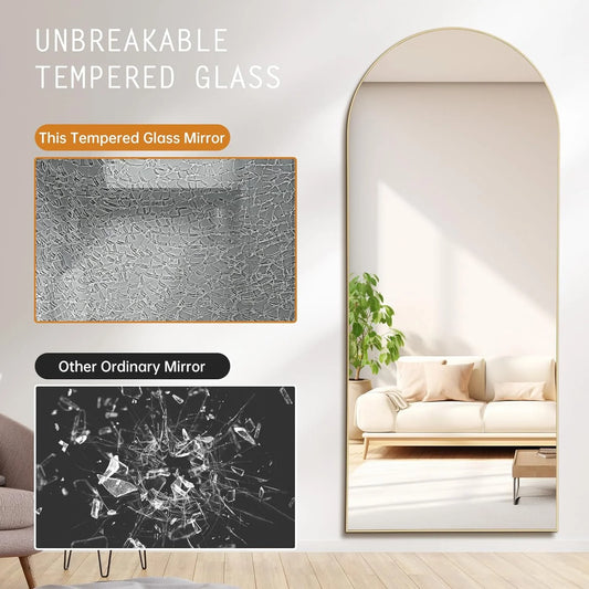 Cocosity Arched Gold Frame 64"x21" Floor Dresser Mirrors for living Bed Bath Office Room wall