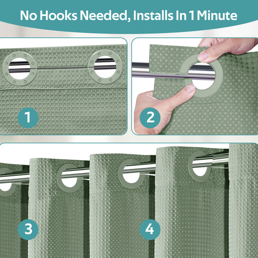 Cocosity Hookless Waffle Weave Waterproof Shower Curtain, 86" x 72", Green