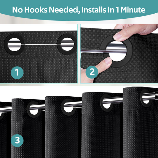 Cocosity Hookless Waffle Weave Waterproof Shower Curtain, 74" x 72", Black