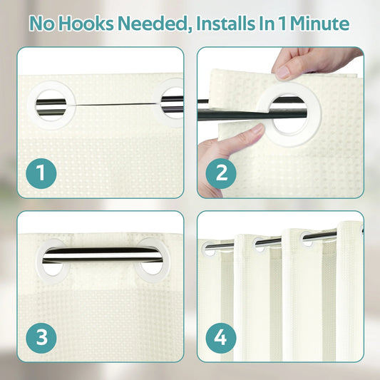 Cocosity Hookless Waffle Weave Waterproof Shower Curtain, 74" x 72", Beige