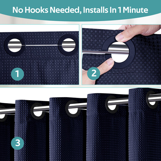 Cocosity Hookless Waffle Weave Waterproof Shower Curtain, 74" x 72", Blue