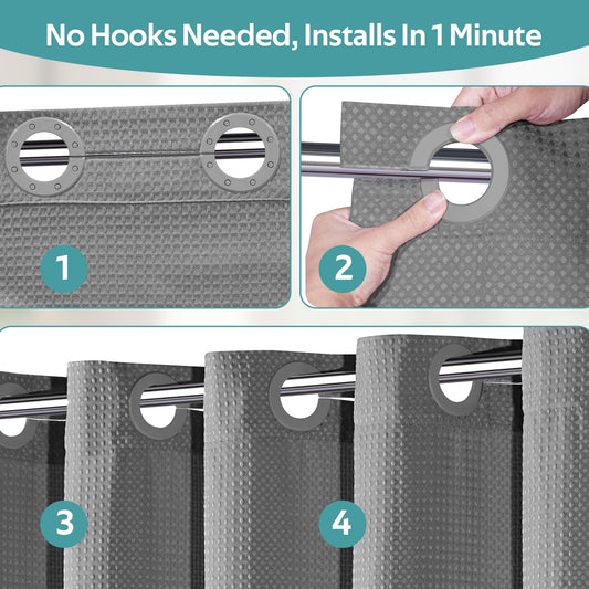 Cocosity Hookless Waffle Weave Waterproof Shower Curtain, 86" x 72", Gray