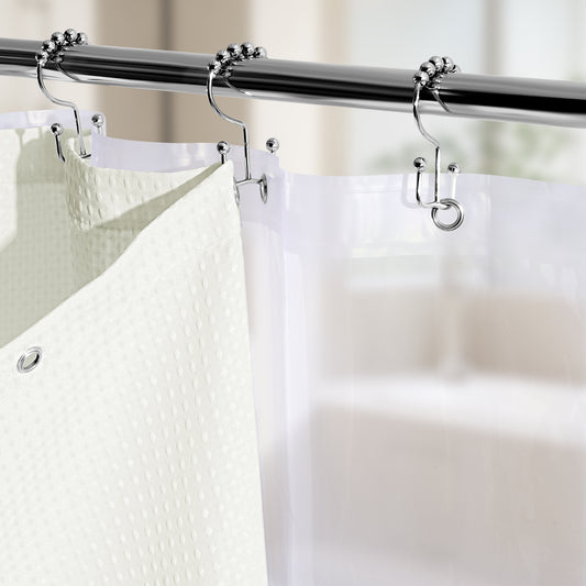 Cocosity Waffle Textured Heavy Duty Shower Curtains with PEVA Clear Shower Liner & Hooks - Beige 72"x72"
