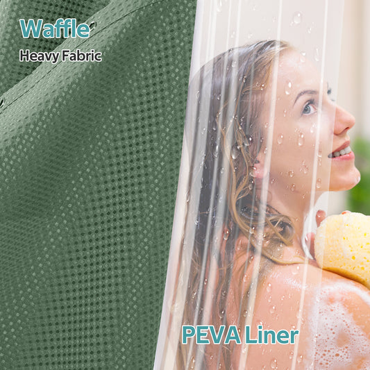Cocosity Waffle Textured Heavy Duty Shower Curtains with PEVA Clear Shower Liner & Hooks - Green 84"x72"