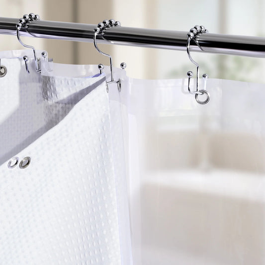 Cocosity Waffle Textured Heavy Duty Shower Curtains with PEVA Clear Shower Liner & Hooks - White 84"x72"