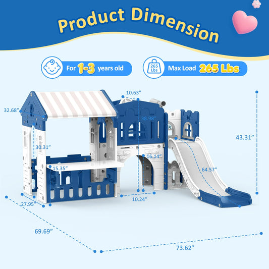 Indoor Kids Playset with Playhouses for Girls Boys Age 1-3, Blue