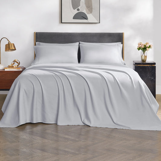 Polyester Microfiber 4 Piece Bed Sheets Set for Hotel Home Apartment School Bedding, Light Gray Twin Size Bedding