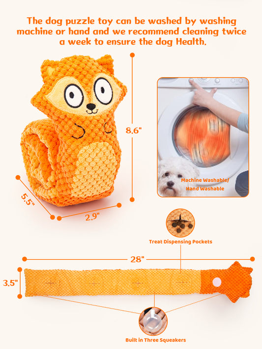 Anyask Plush Dog Squeak Toys for large Small Medium dogs for Aggressive Chewers, Fox